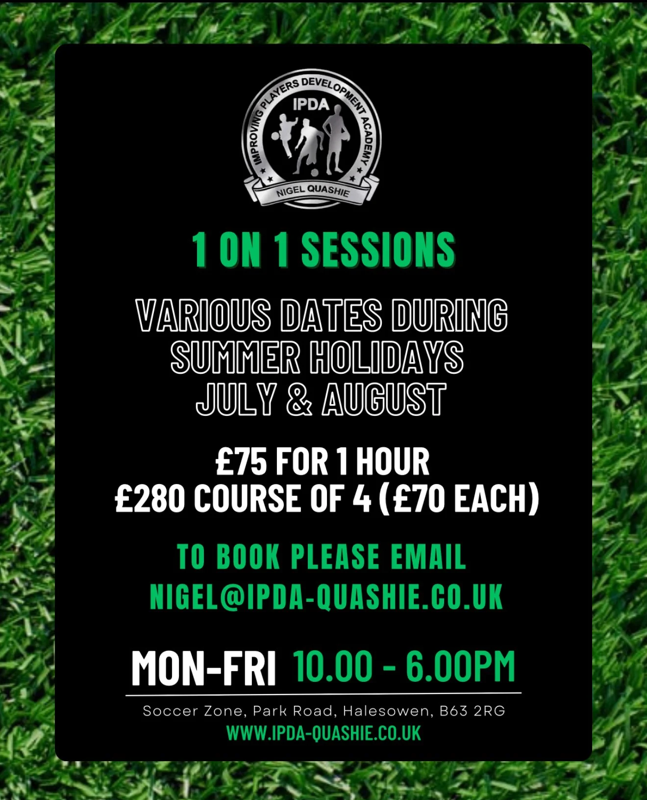 IMPROVING PLAYERS DEVELOPMENT ACADEMY one oN one coaching SESSIOn £75